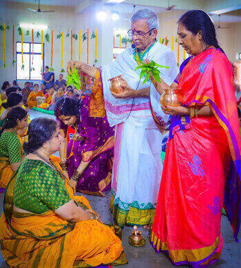 Sri Guru Karunamaya is the founder of non-profit organisations, Srividya Learning Centre in India and Soundarya Lahari in the United States. Under Guruji’s direct guidance, regular workshops are conducted online and in person. Participants receive Mantra deeksha (initiation) directly from Guruji. As part of the Srividya module, participants are also taught essential life-transforming skills.